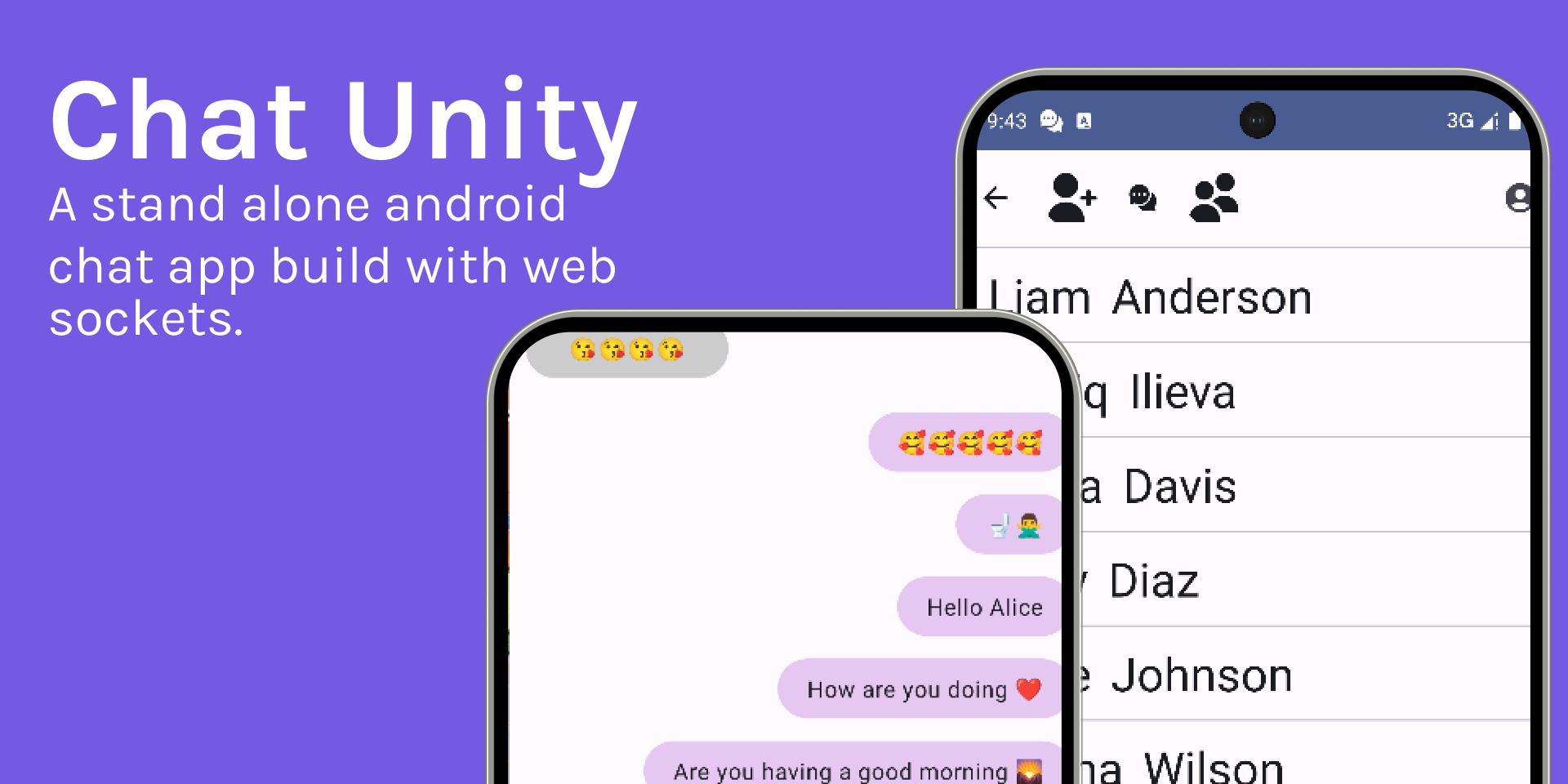 Chat Unity is a Java-based TCP application built using plain Java whit a adnroid Kontlin based user interface. The point of this project is to get a grasp on how to receive and parse messages via TCP. The application is built using Java models that were implemented in Java 9.
